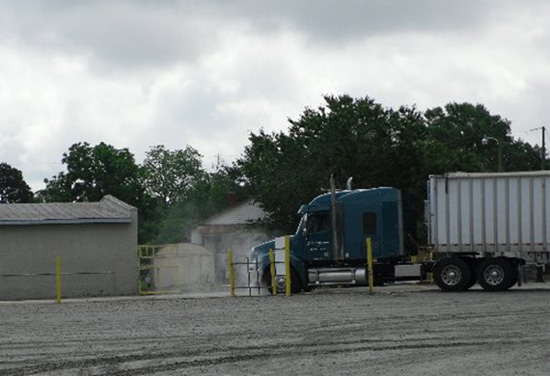 When a truck arrives, the whole truck drives through the sprayer, bumper to bumper